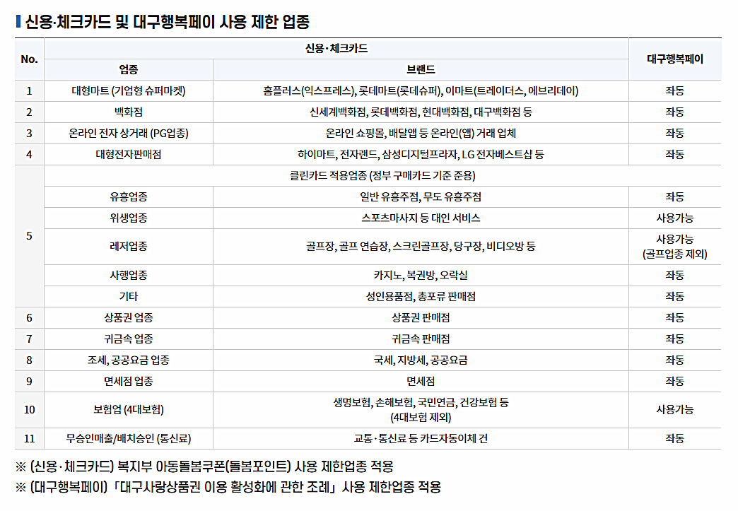 ※ 대구희망지원금 > 아동돌봄 순으로 차감
