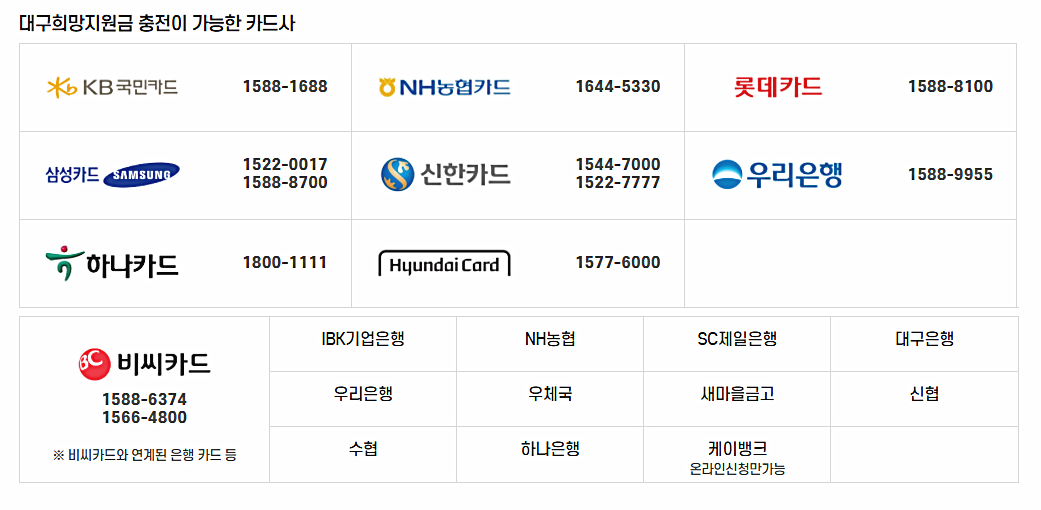 대구희망지원금신청 KB국민 NH농협 현대카드 방법