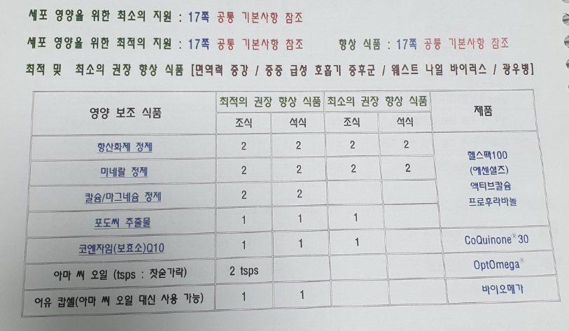 최적의 권장 향상 식품 수준으로 영양 보조식품을 | 섭취하여 면역 시스템을 향상시키고 증강시킬 수 있다는 것은 우리의 의학 문헌에서 반복해서 증거 해 왔다. 세포 영양이 그 출발이다. 이 것은 의학문헌에 | 건강 혜택을 주었다는 최적의 권장 향상 식품 수준 에서 몸에 모든 영양소를 제공하고 있다.