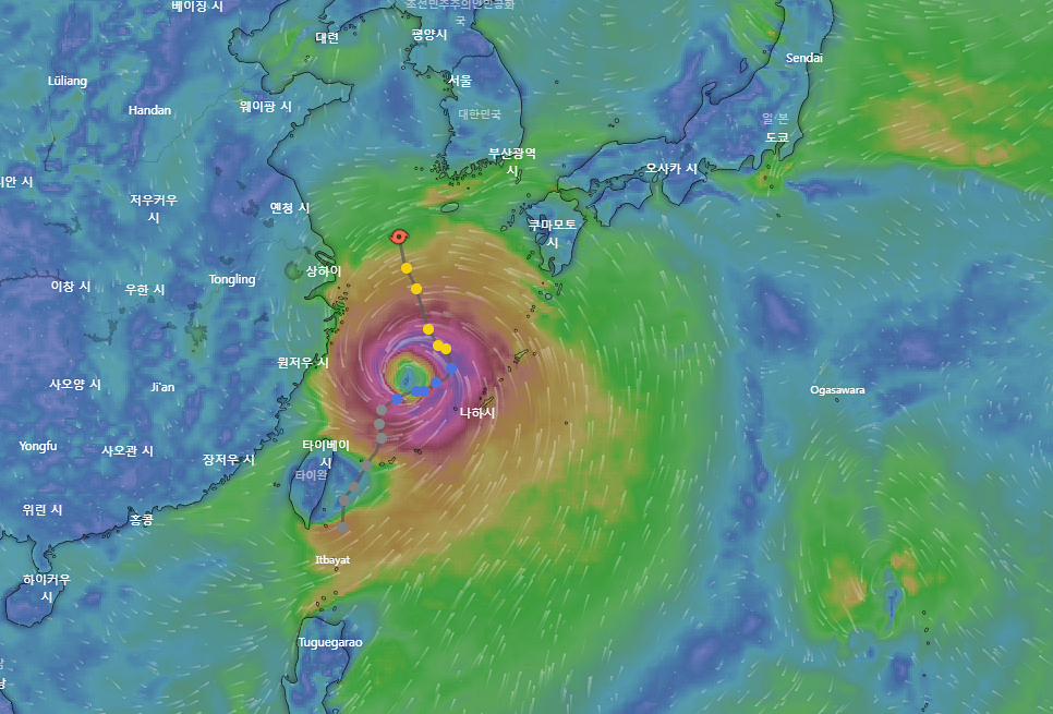 9호태풍 마이삭 예상 경로 : 실시간